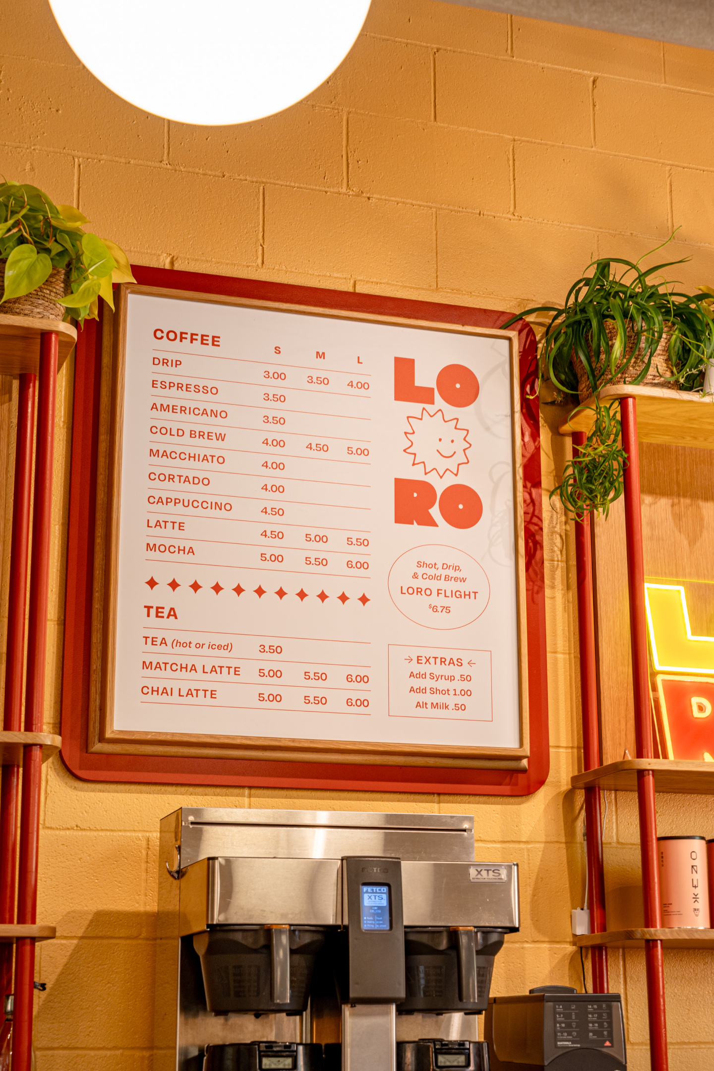 The existing space was quite blank—there were no anchored seats in the space other than in the narrow back hallway, and the front counter encroached far into the front dining area. There was a lot of open space that had yet to be utilized. The room was in dire need of sound dampening, with a tin ceiling that echoed and amplified every conversation. While Ranch is the primary business, we were also presented with the challenge of incorporating LoRo’s branding and coffeeshop offerings.